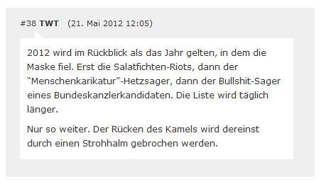 3. | In der vergangenen Woche haben wir die Recherchen von Jörg Schindler und Steven Geyer über das Internetportal "Politically Incorrect" veröffentlicht. |