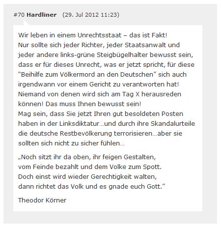 Gesinnungs"richter" Registriert unter Deutschfeindliche Juristen Gesinnungs"richter" Linker Abschaum Volksverräter |